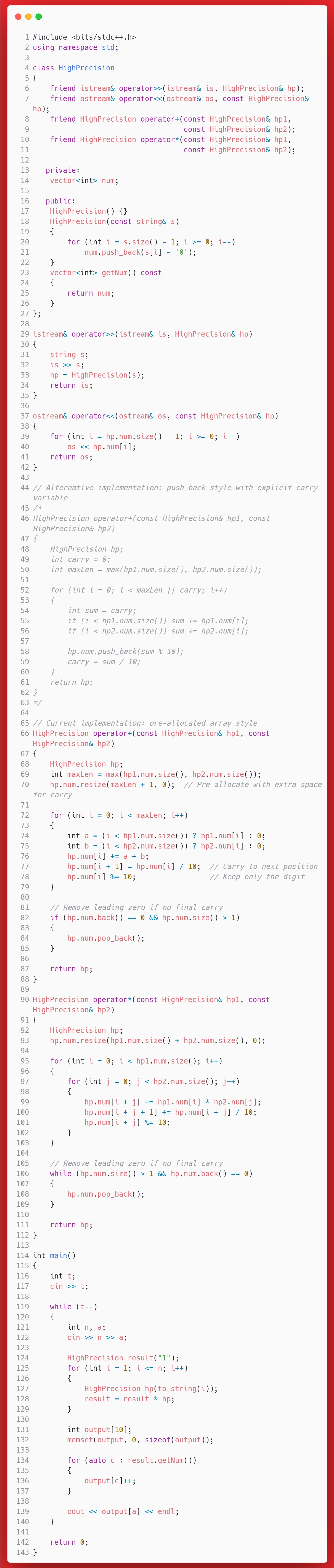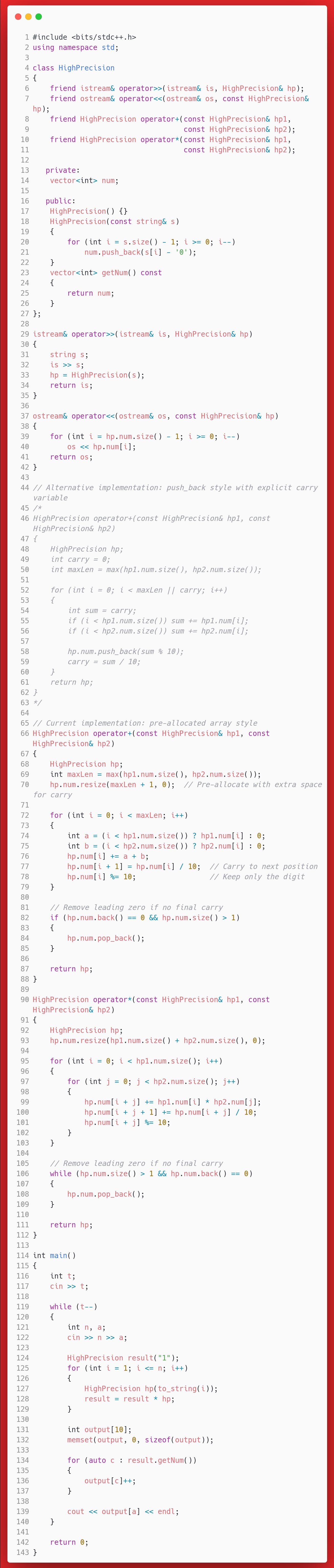 基于我们之前的高精度基础,特别是P1303:A*B Problem,我们可以很快解决这个问题。
